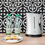 - ❓¿Hay una cocina disponible en este apartamento para uso de los huéspedes?Sí, este apartamento está equipado con una pequeña cocina y ofrece también un hervidor eléctrico, una cafetera/tetera y menaje de cocina.